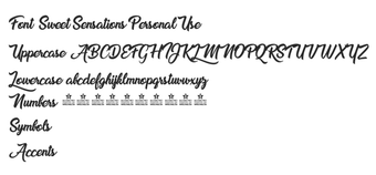 Sweet Sensations, akıcı ve elle yazılmış tarzıyla sıcaklık ve kişilik sunan bir yazı tipi ailesidir. Eğlenceli ve zarif kıvrımları ile hafif dokulu çizgileri, kişisel dokunuş gerektiren projeler için mükemmel bir seçimdir. Kalın büyük harfler, kendine has süslemeleri ile dikkat çekerken, küçük harfler okunabilirliği koruyan zarif döngülerle tasarlanmıştır.
